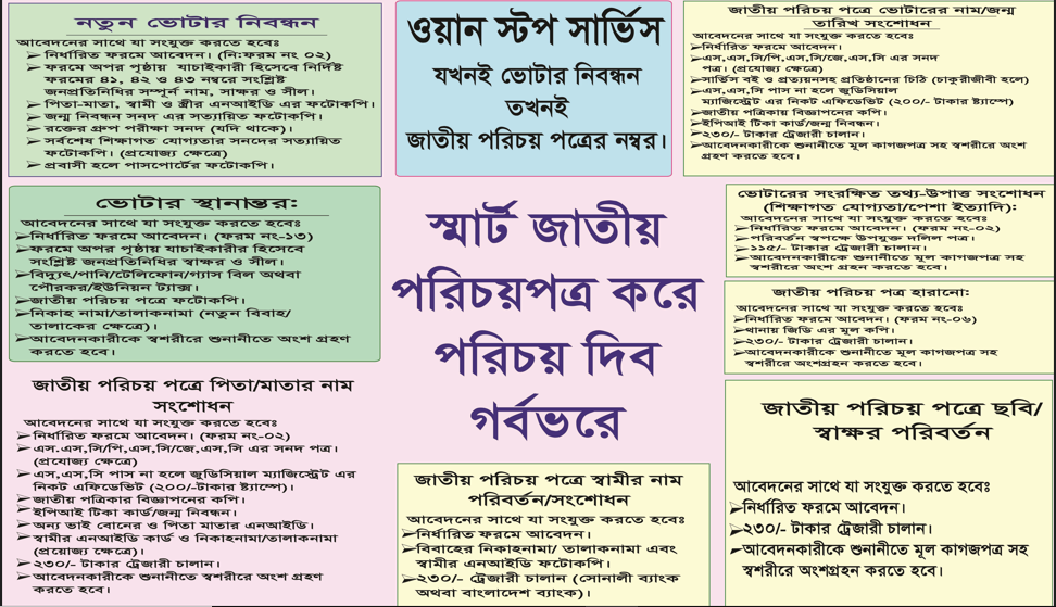 ৪। হারানো জাতীয় পরিচয়পত্র প্রদান।